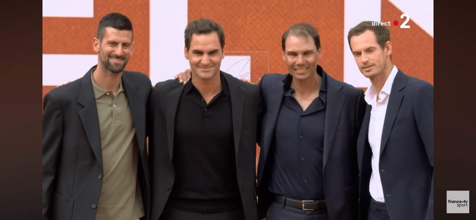 So why, during the emotional Roland Garros tribute ceremony, are only three men standing beside him in this photo?